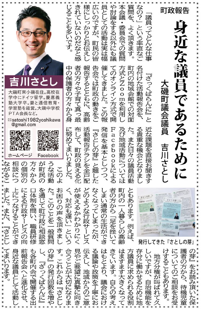 「身近な議員」であるためにこれまでに取り組んできたことや今後取り組みたいことについて具体的に書きました。